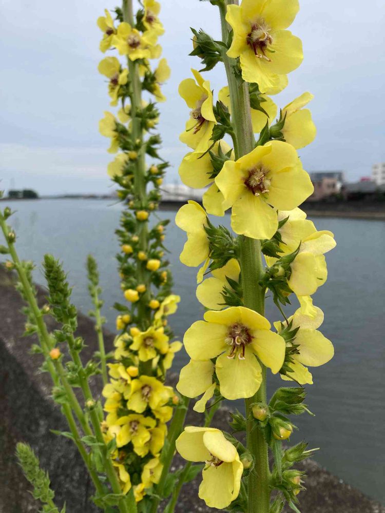 20220516 とってもノッポな黄色い花が咲きました。去年と同じ様な場所に咲いているのを見つけました。ビロウドモウズイカです。季節が巡ったことを実感します。