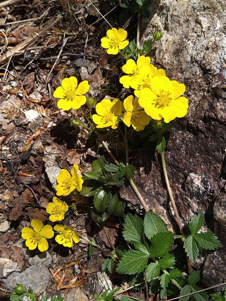夏のような陽射しを浴びて当に黄金の輝き!地面を這うツル?を目一杯広げて金梅のカーペット 県境の山