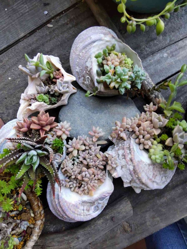 貝殻に寄せて、あとは多肉まかせ