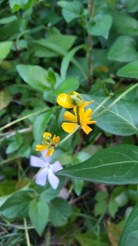 庭でツルニチニチソウに混じって黄色い小さなお花が咲いていましたが、何の花か分かりません😅