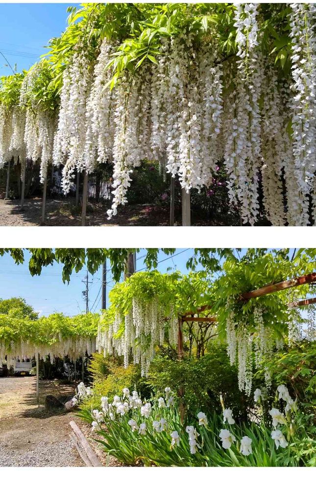 私が 訪れた 昨日は もぅ牡丹も半ば過ぎでしたが ジャーマンアイリスと長~い白藤の花が 見頃でした🥰