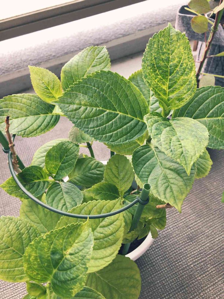 春になって新芽を出しましたが、葉っぱの色が薄いなぁ、と。