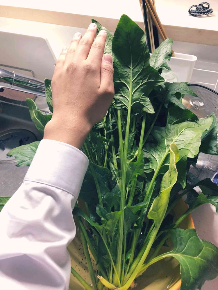 抽薹しそうだったので収穫しました。ほうれん草「弁天丸」です。