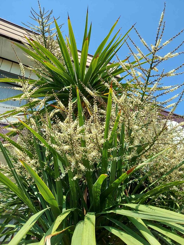 久しぶりに晴れ間☀️が続いた真っ青な青空💙に向かって一気に開花した🎉ニオイシュロランのお花😊🌟