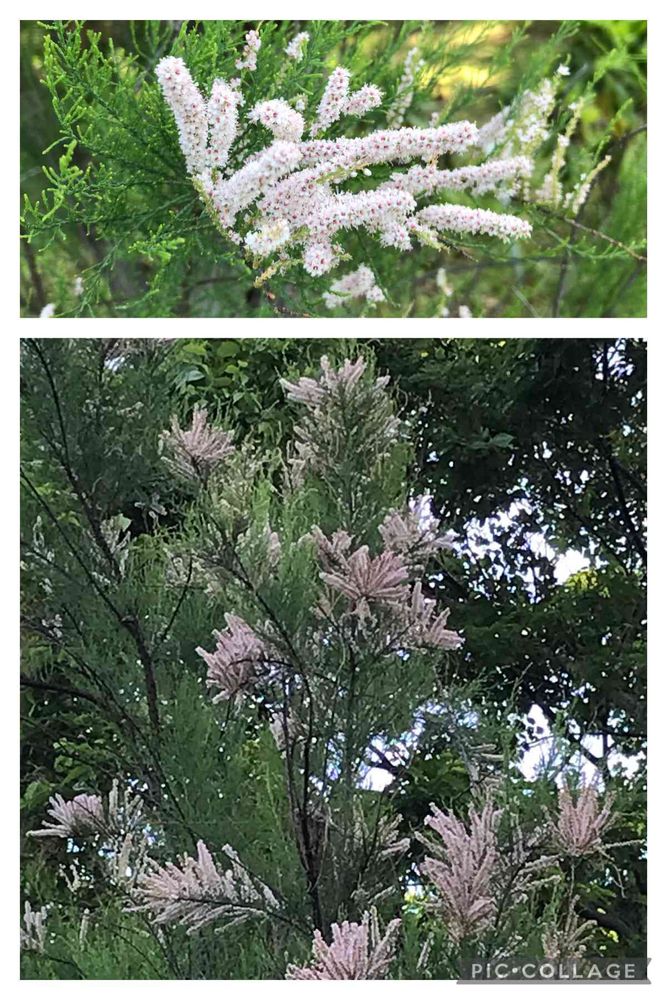ギョリュウという繊細だけど丈夫そうな木。2メートル以上はある枝の先に可愛い花をつけていました。