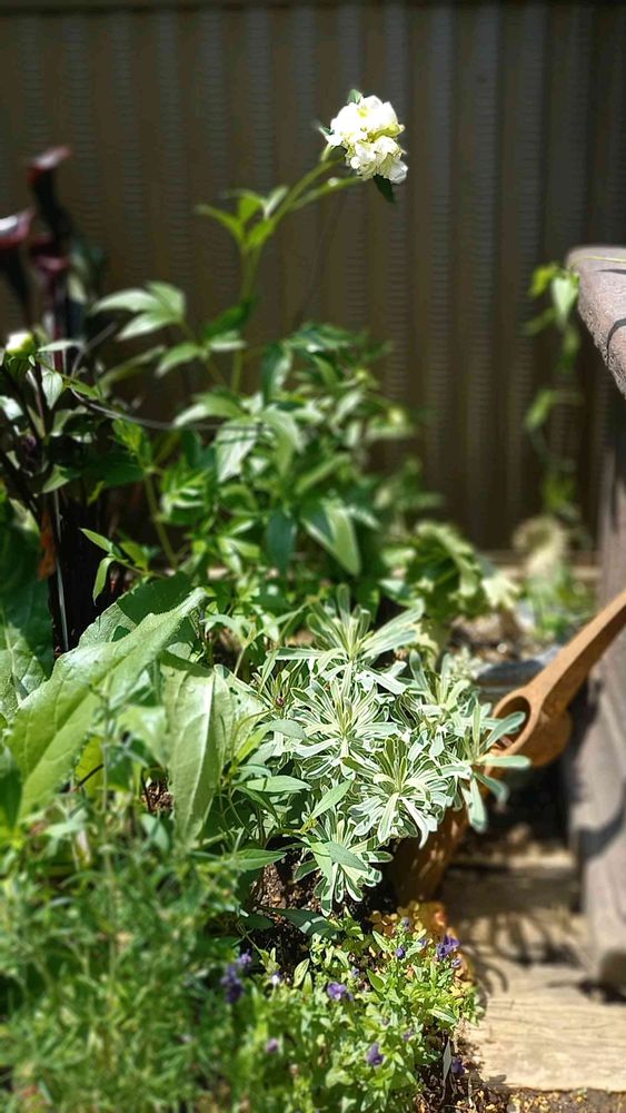 マンション一階専用庭でDIYガーデニングしています。 日当たりのいい南側の庭と半日陰の東側のL字型の庭です。 ペイントの剥がれやアイアンの錆びなど、 シャビーでカッコイイのが好みです。