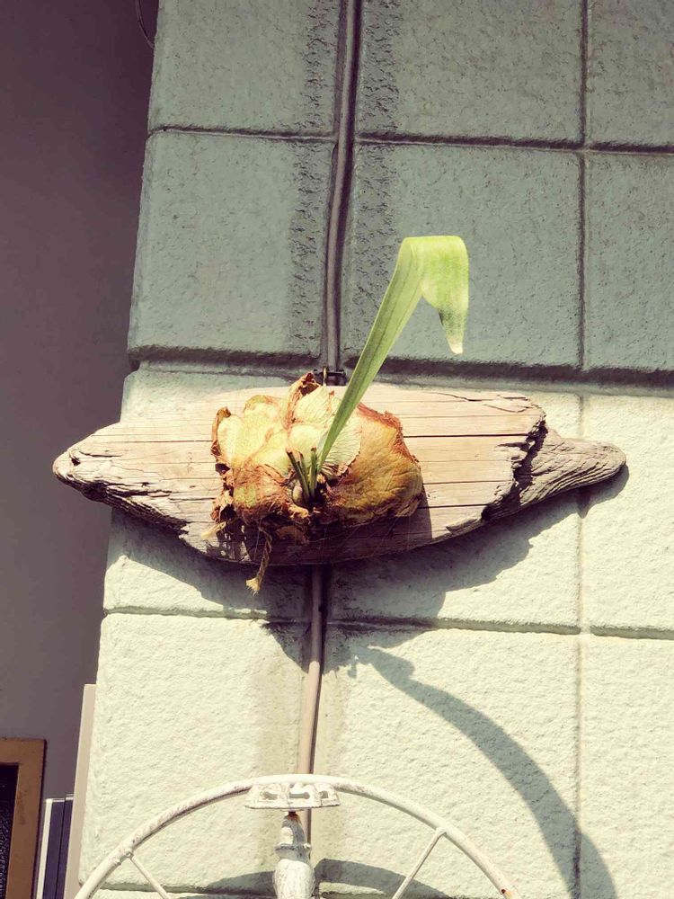 近所のおじさんから貰ったコウモリ蘭を流木につけてみた