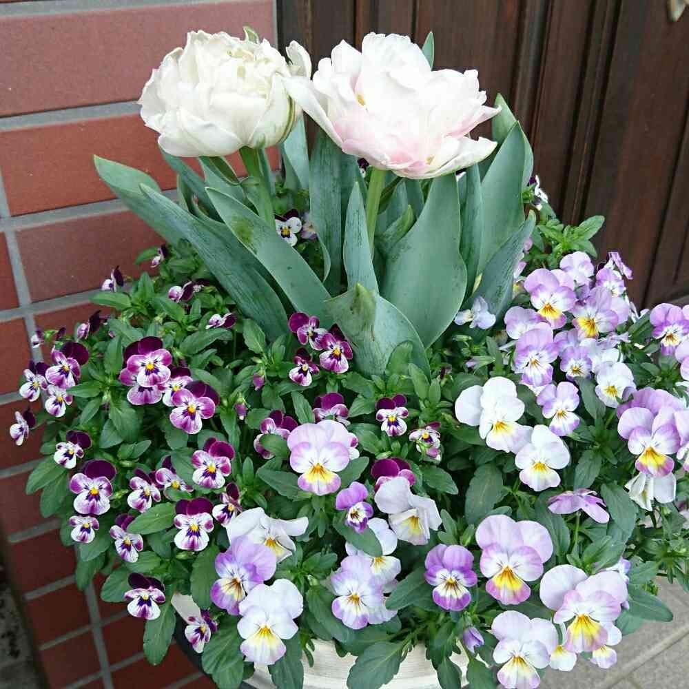 kaorunさんの玄関,ビオラ・ももか,チューリップ・アンジェリケの投稿画像