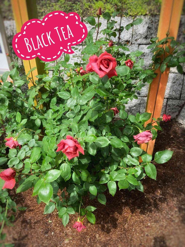 ぎふワールドローズガーデンのブラックティ、先日、大野町から迎えた新苗もこんな立派になれば良いのですが、何年かかるのか?