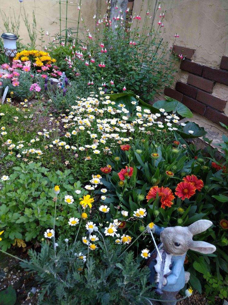 こぼれ種からのノースポールはもう終わりですね。手前のガイラルディアが1株でかなり大きく広がり嬉しい悲鳴😂