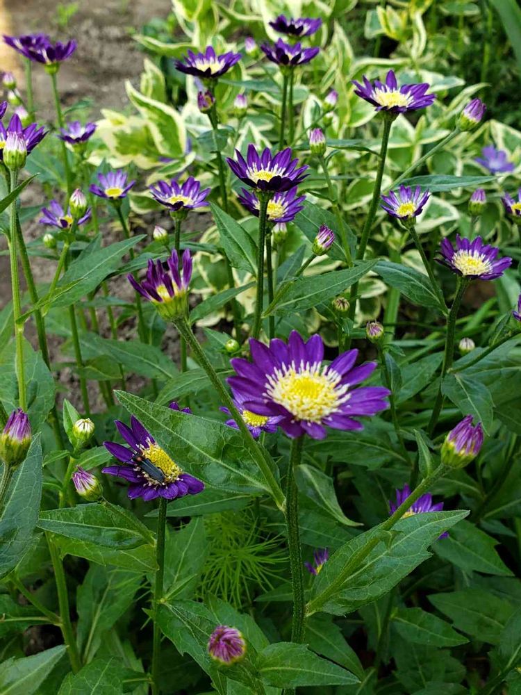 都忘れってよく聞く花の名前ですが、初めて目にします。マーガレットの紫みたいなお花なんですね。発色が綺麗。