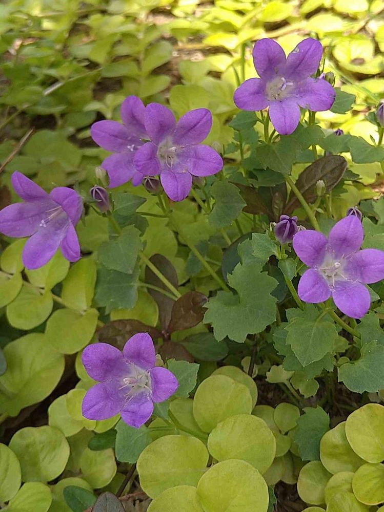 昨年寄植えにしたベルフラワー✿❀ダメ元で地植えに、花が咲いてました。冬越できました。