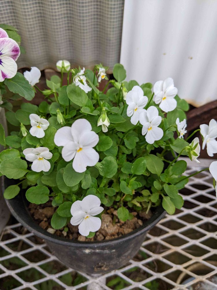 コチラのビオラも、玄関前にいたこです。青色でしたが、色素が白に変わりました。🤔🤭😱