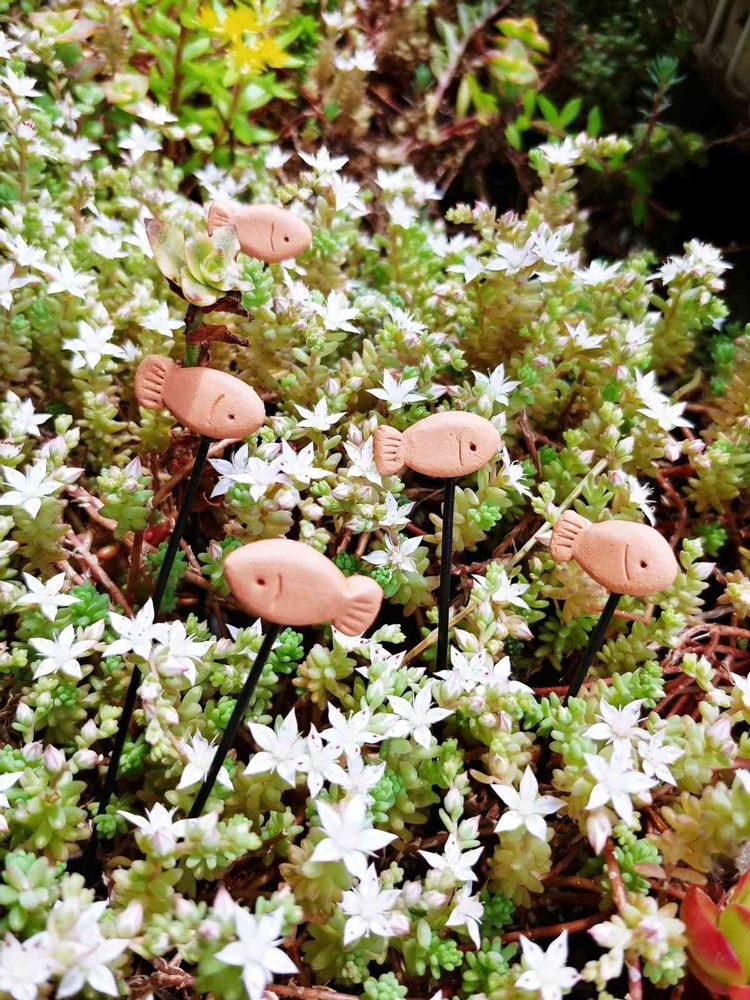 以前ちまちまと大量生産したテラコッタの小魚ピックをさして遊んでみました🐟🐟🐟💦
