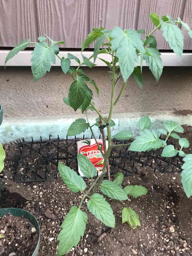 株元の方が徒長していたので、その部分を土に埋めて、普通?の節間から出して仮支柱に縛っています🪢