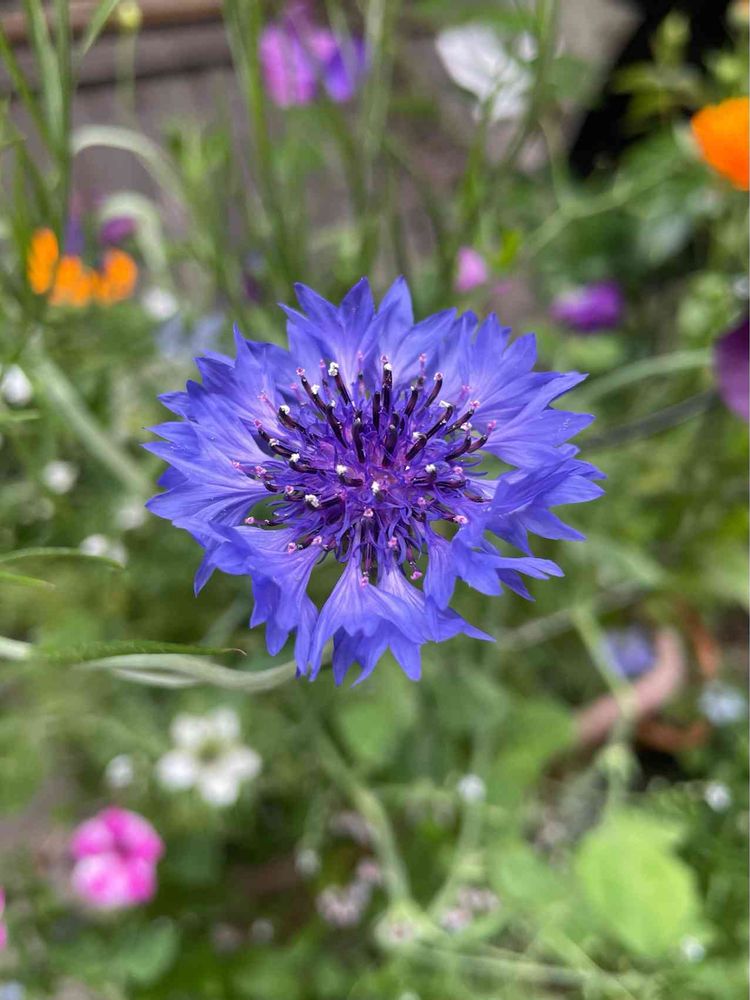 矢車菊は白やピンク、紫色もありますがミックスフラワーの種の中にはこの色がたくさん入っていたのかな…?