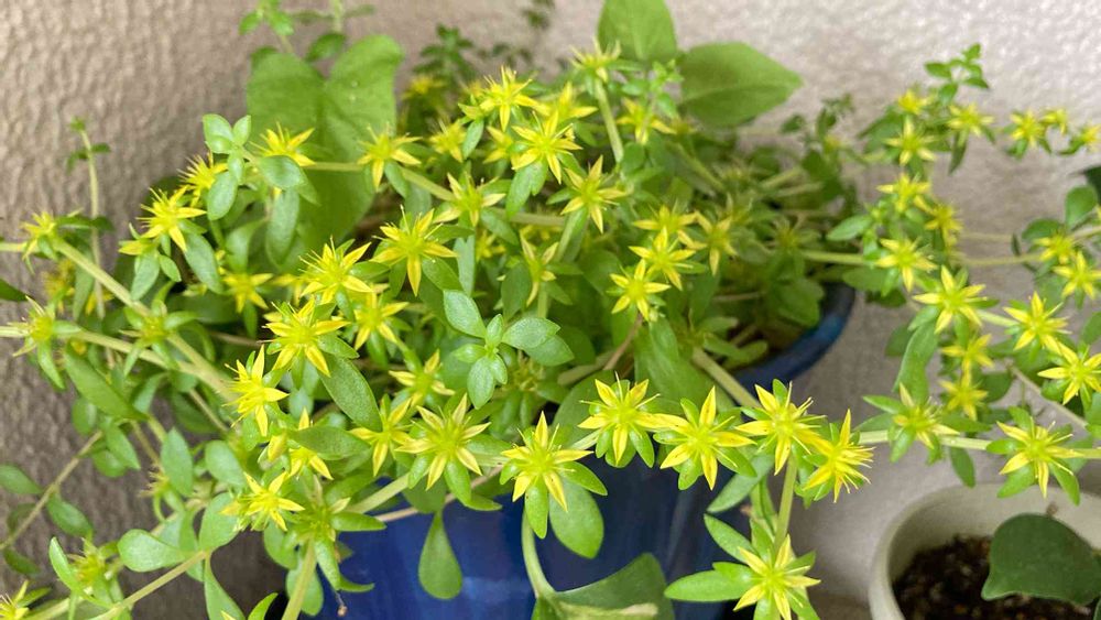 野草とポトスの切れ端の寄植えでまさかの開花🌼。咲いて2週間近く経過してますがいつまで咲き続けるのか不思議。