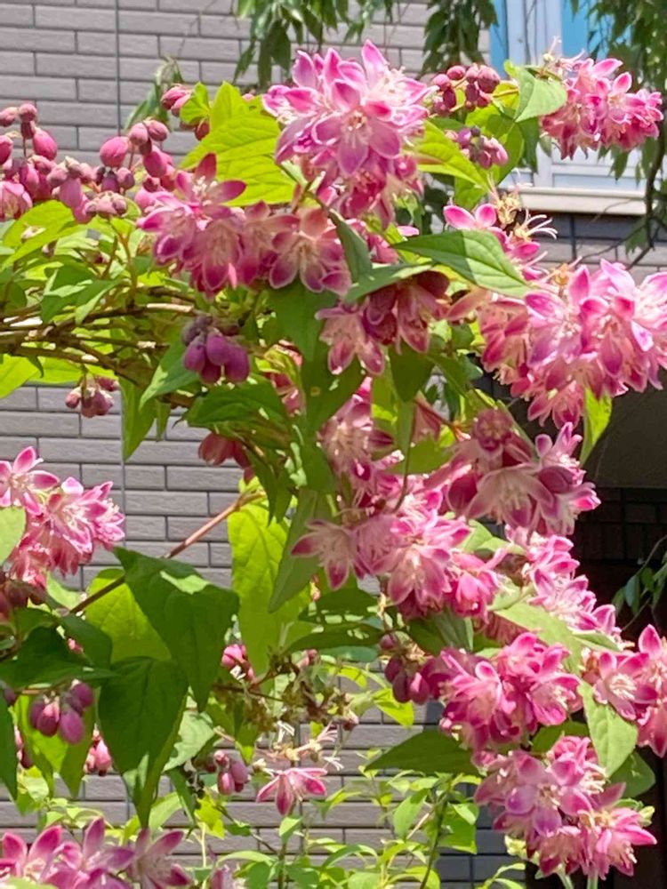 こんなに濃いピンク色のウツギ、サクラウツギがあるんですね
