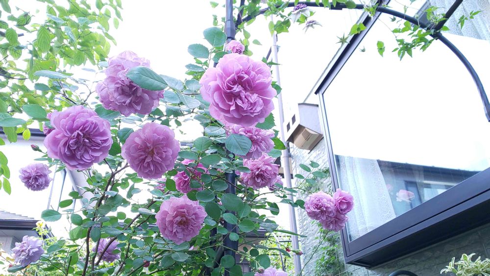 アーチの右側から這わせていたバラは陽当たり悪くて成長しないと途中でどかしてしまったのでアーチがまだスカスカです😅