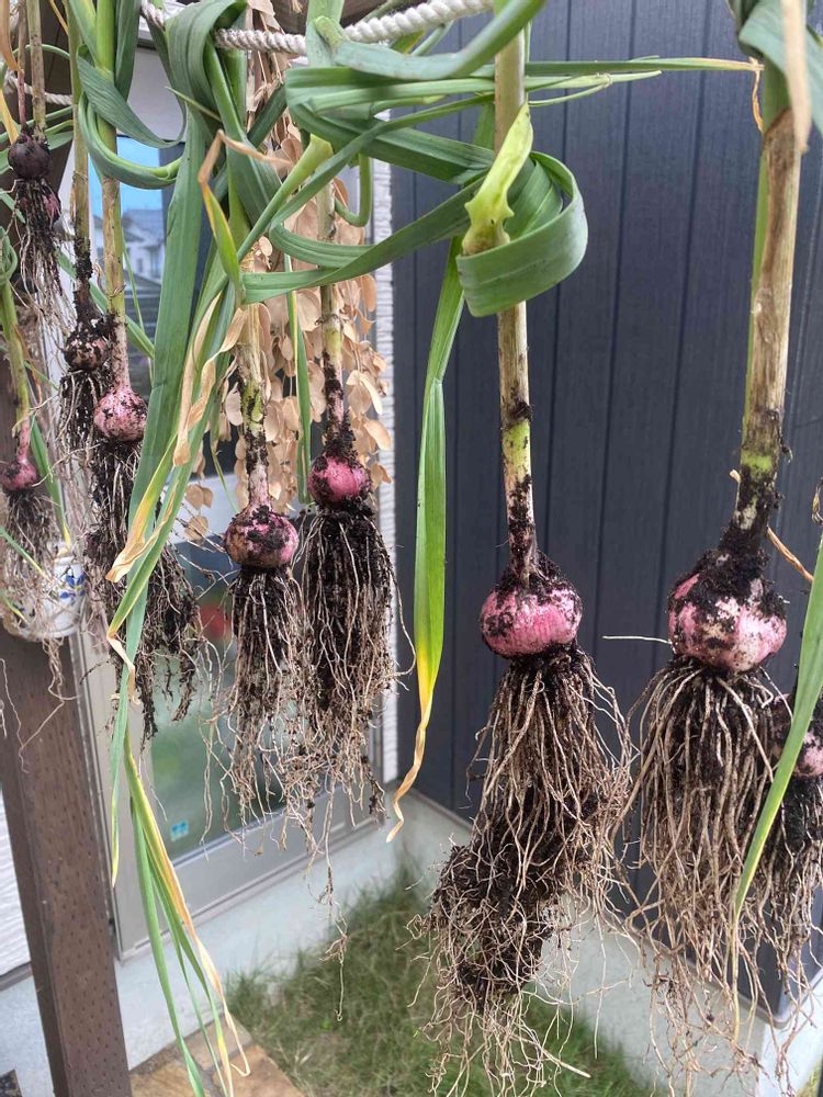 赤ニンニクが収穫できました。天日干しします。
