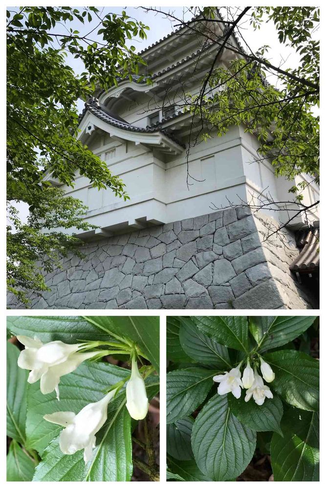 城後方に日本庭園があり 今はタニウツギしか見られませんでした