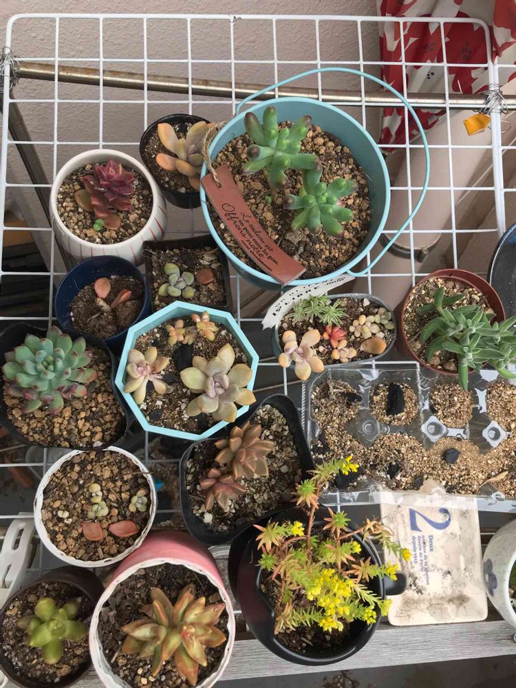 ボロボロになってしまってホームセンターの見切り品になっていた寄せ植え多肉植物たちをひょんなことから「キレイにしてあげよう」と買い上げ、剪定したり挿し芽にしたり葉挿ししたりしてからハマった多肉植物沼。