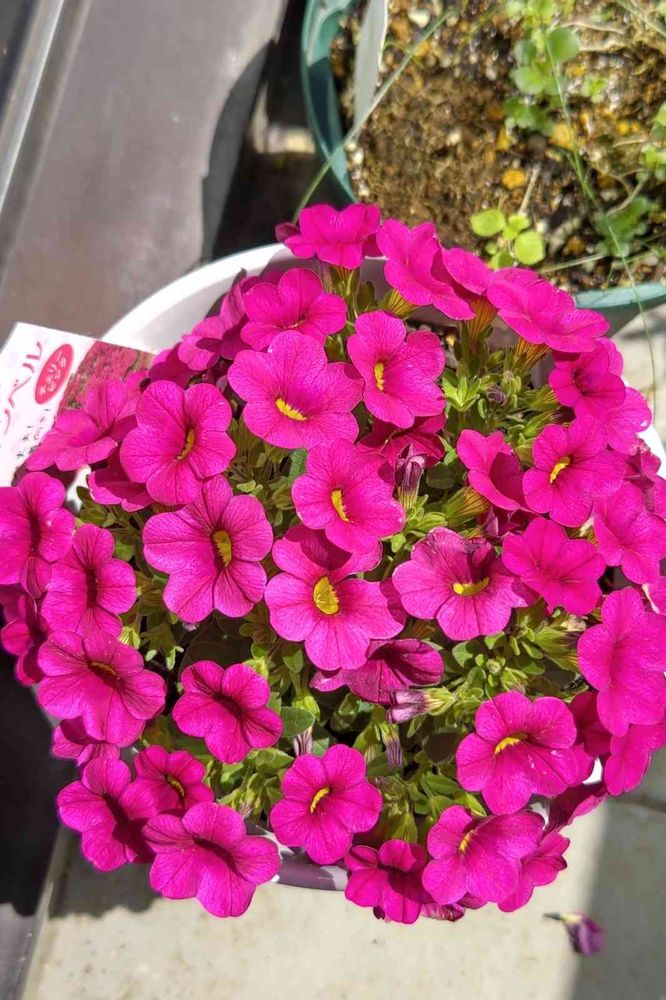 サントリーさんから鉢の外に延びた枝を鉢のまわりに沿って刈り込むと、分枝が促進され枝数が増え花芽が沢山つくと。