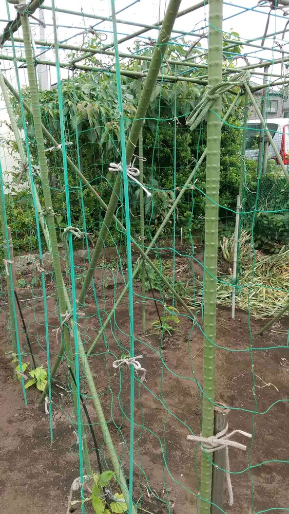 3月19日に種まきをしたゴーヤが蔓を伸ばし始めたので支柱をたてました😉🤗
