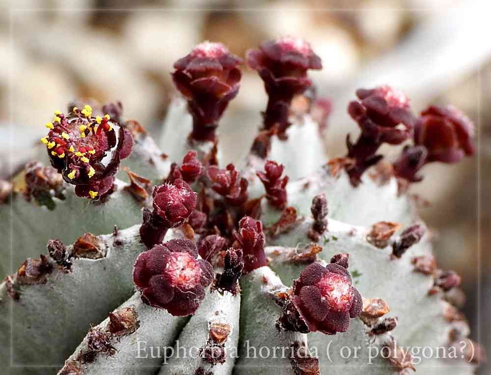 ホリダの名前で買ったけれど、この花の色からするとポリゴナだと思う。白い肌に暗紫色の花がオシャレ。