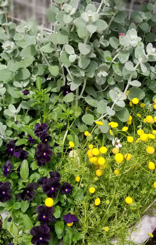 ビオラブラックディライトの真ん中が黄色いので、黄色のポンポン花ほたるを合わせました🖤💛