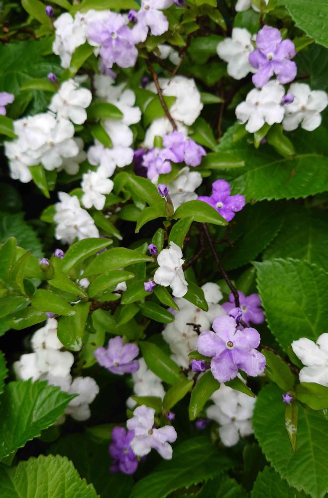 ニオイバンマツリの花が満開になりました、紫色💜から白🤍に変わって綺麗です💕