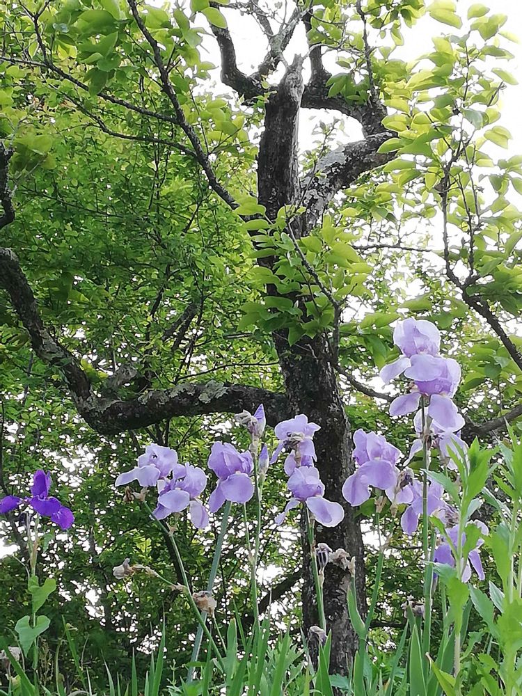 緑の木漏れ日の下💜のジャーマンアイリスは綺麗ですね✨💠