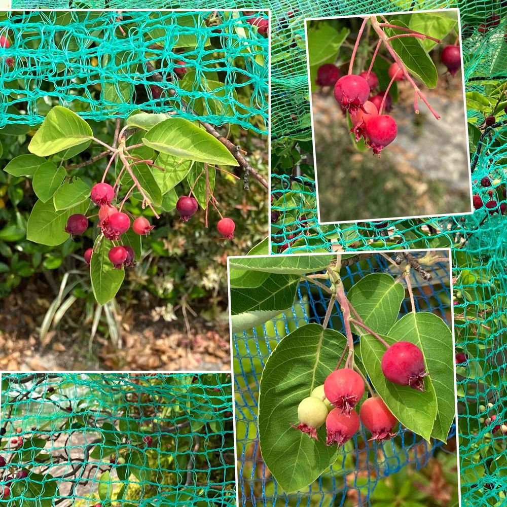 赤い実がいっぱい咲いています.ネットにかぶせています.