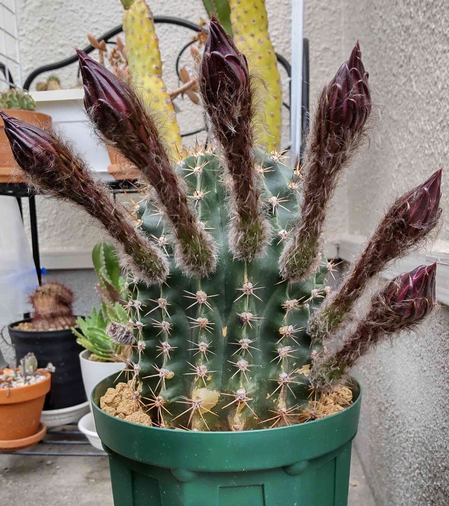 長さはおよそ14センチ程度、このサイズの蕾が一度にこれだけ出ている姿を見るのは、これが初めてです🙀✨🌵✨