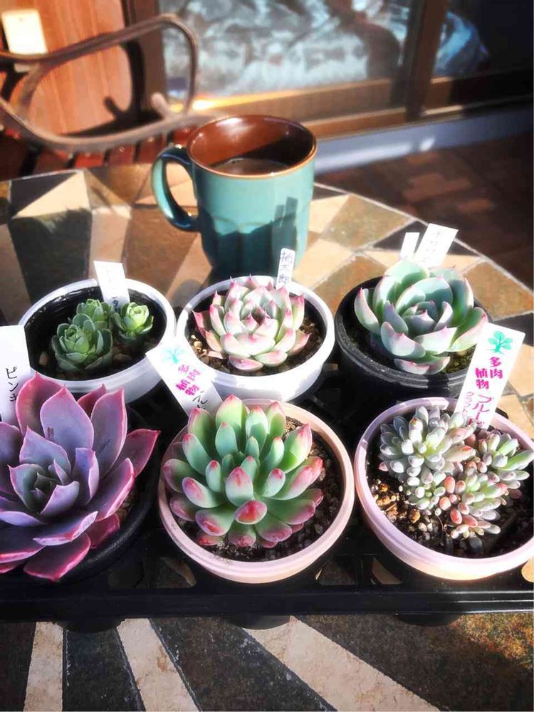 朝の日課となった、多肉ちゃんを眺めながらのコーヒーTime☕️