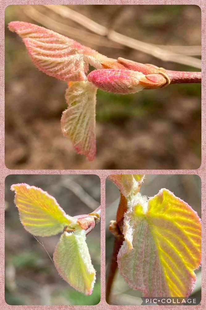 葉の周りに何かが付いている芽がありましたよ。この色もきれいだなぁ!!