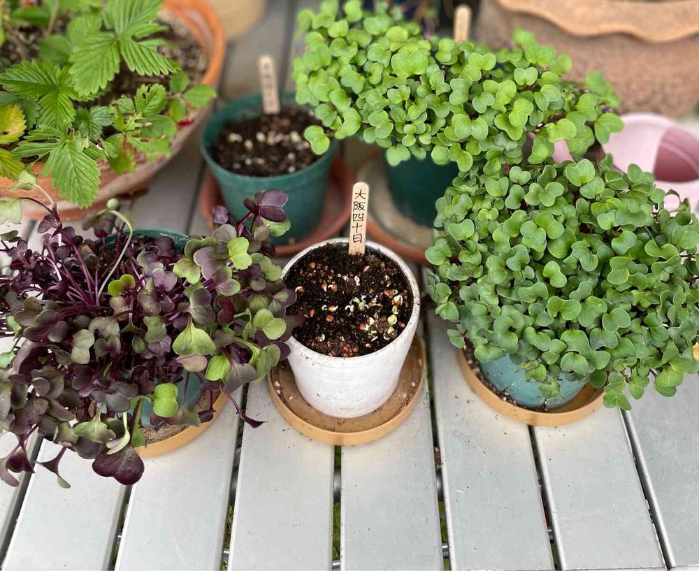 バルコニー/ベランダ,ルビーカイワレ大根栽培,紫カイワレ大根栽培の投稿画像