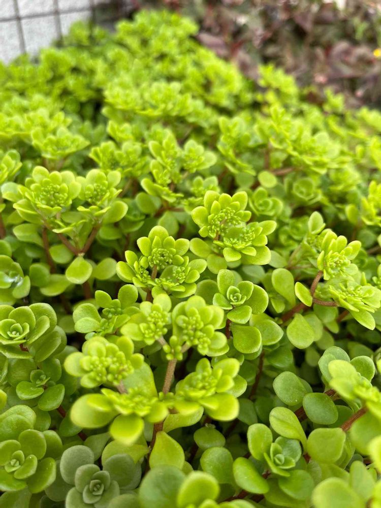 丸葉万年草 これは、花が咲くんでしょうか??長雨や暑さ寒さにやられてしまって全滅したけど、こうしてまた元気に復活してくれました💕
