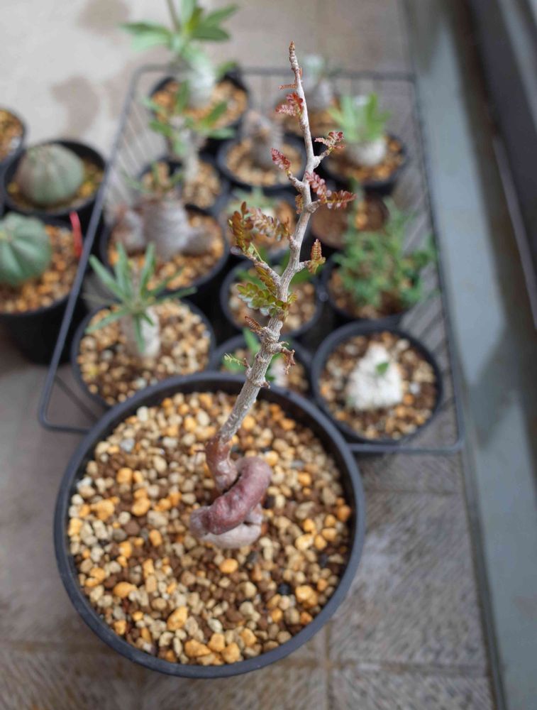塊根太ってるけど、茎がまだまだゴリゴリになら無い。枝も分岐して欲しいけど、う~ん、強剪定すべきか悩ましい。