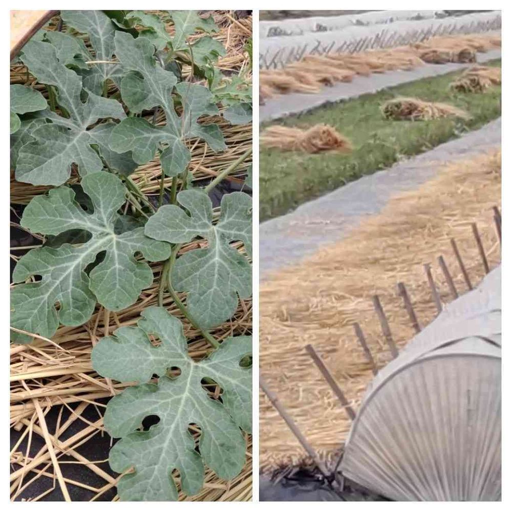 ✨敷きわらマルチ✨ ツルが藁に絡まり固定されて風雨に強くなり 食害にも効果が …