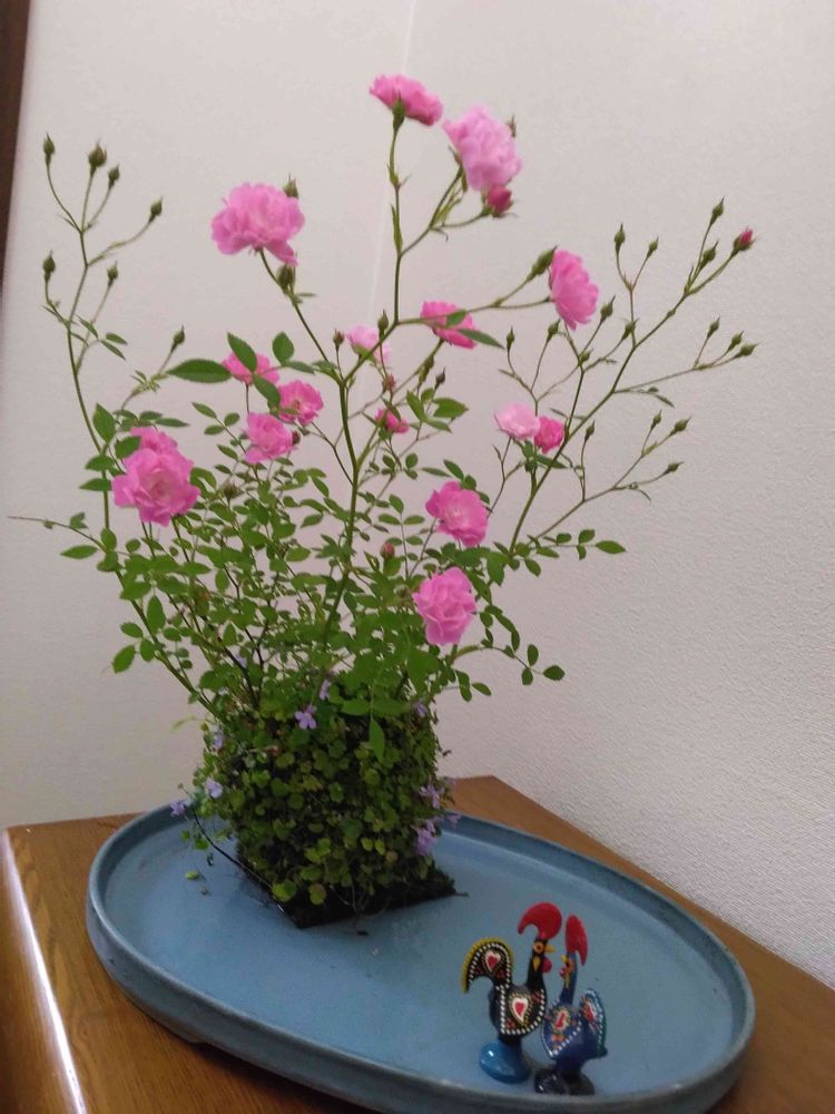 すみません😣💦⤵️ご挨拶遅れてましたね😖😨可愛いミニ薔薇に苔玉がハツユキ葛お洒落✨花器も素敵です😍私この感じ好きです😍コメントさせて頂きました😉宜しくお願いします🙇⤵️