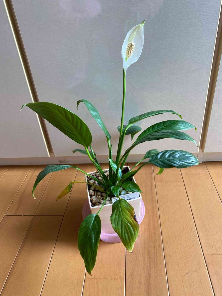 去年のGWに百均で買って来たスパティフィラム🪴 順調に育ってとうとう花まで咲きました🌸🎵 うれしい🥰