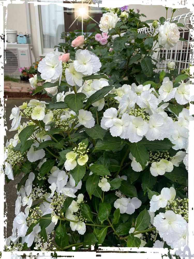 春から初夏にかけては、アジサイとバラの共演で狭い駐車場が更に狭くなっています(^^;