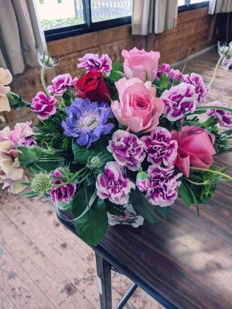 お花教室。先週のアレンジのお花もまだ頑張って咲いてくれてる。可愛い🌷