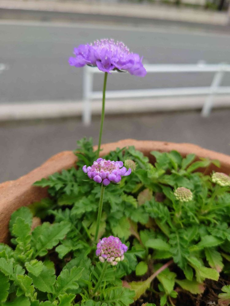スカビオサ三姉妹です😁。ちょっと離れた感じですね。時々咲いてくれます❣️。