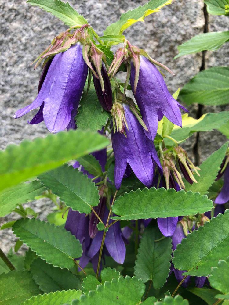 初めて紫色のホタルブクロを見ました。とっても鮮やかな紫色なんですね。キキョウ科という感じですね。