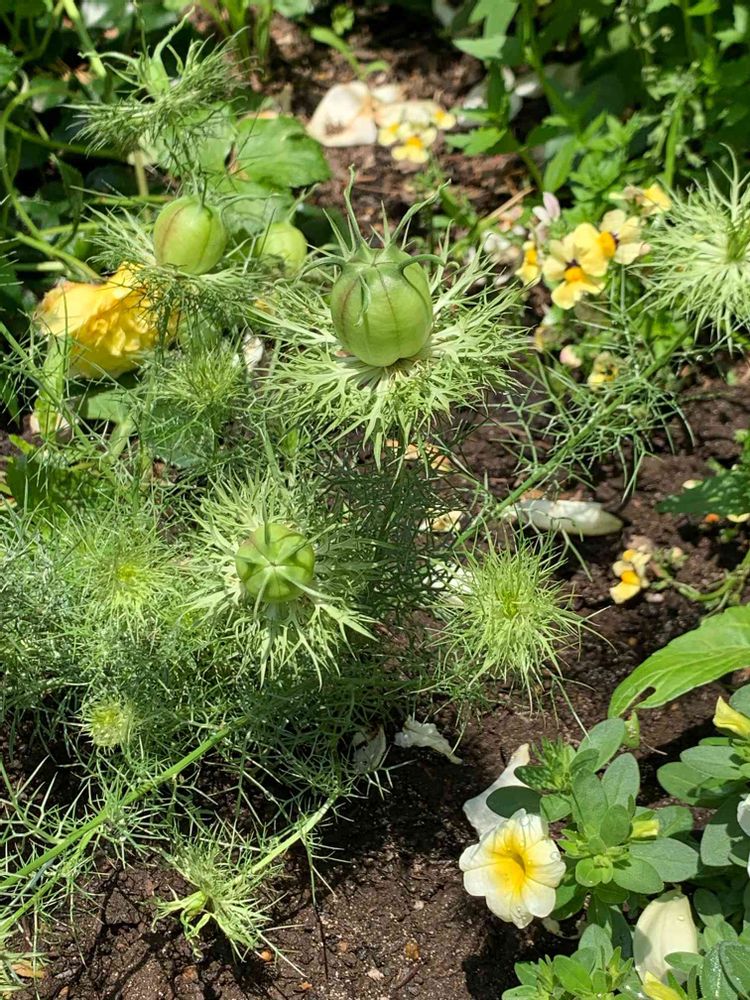 これはニゲラの種です。風船みたいに膨らむのですよ。この風船が乾燥したら種が採れます。🌿💗🌿