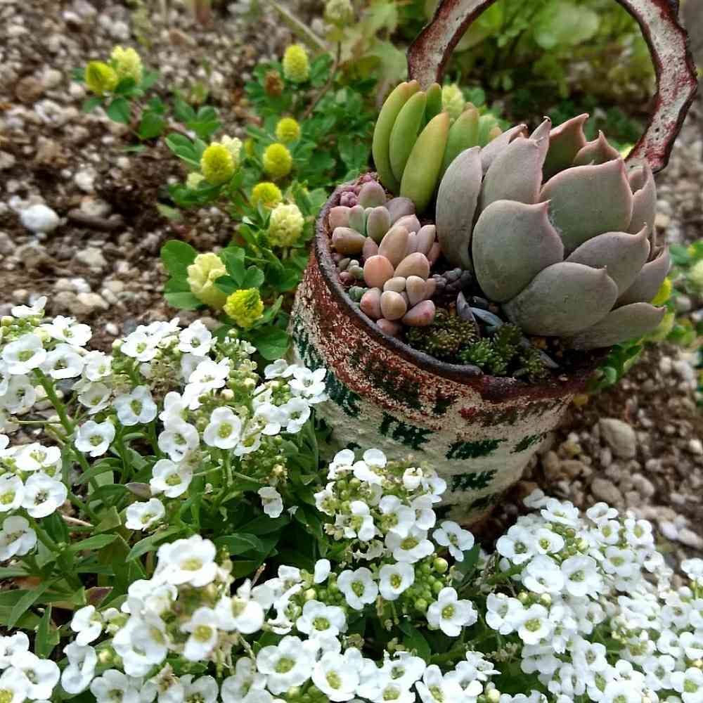 アリッサムだよ❤その上のがトリフォリウムイエロー可愛いクローバー🍀の仲間だって⸜( * ॑꒳ˆ* )