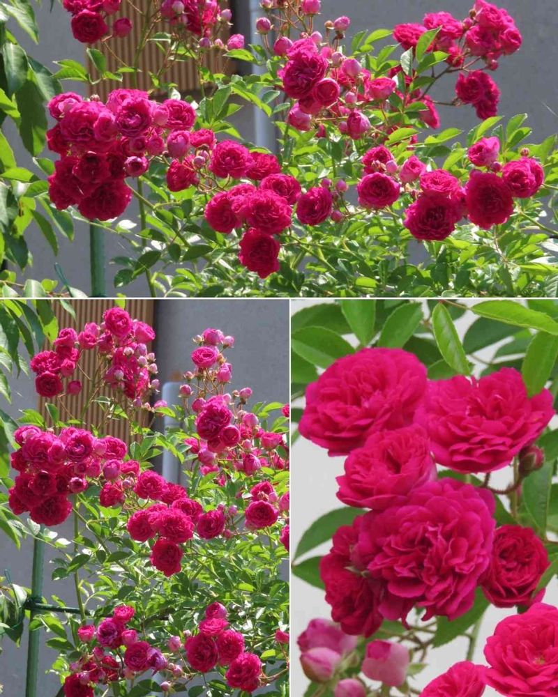 一季咲きのツルバラで、径3cmのポンポン咲き、花色ローズレッド、トゲが少なく丈夫、すべてピッタリです🙆