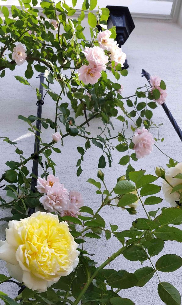 一昨年に地植えして、みるみる伸び冬に誘引し昨年には見上げる感じに美しく咲いてくれましたよ✨